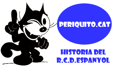 PERIQUITO.CAT és una web independent, sense ànim de lucre, dedicada a la investigació i publicació d'informació del R.C.D.Espanyol, des de la seva fundació al 1900 fins l'actualitat. Tots els textos i imatges publicades a PERIQUITO.CAT han estat recopilades a través d'Internet i d'altres publicacions, per poder oferir una informació lo més completa i fiable possible, amb la única intenció de que la web sigui el lloc de referència històrica pel aficionat al R.C.D.Espanyol. Si alguna imatge publicada estigués subjecte a drets d'autor, preguem ens ho comuniquin i serà eliminada de PERIQUITO.CAT immediatament. |